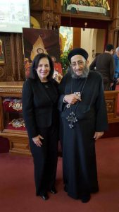 من جانبه هنأها القمص انجليوس ووصفها بالضيف العزيز وقدم لها التهنئة وتمني لها الفوز في الانتخابات العامة التي ستجري يونية القادم.