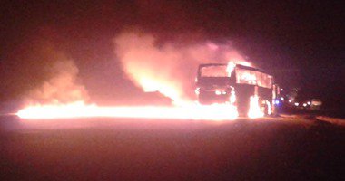 اندلع حريق هائل، منذ قليل، فى أتوبيس رحلات أثناء سيره على الطريق الزراعى السريع أمام قرية قلما بقليوب، وتفحم بالكامل، دون حدوث أية إصابات، ما تسبب فى توقف حركة سير السيارات بالطريق. وتلقى اللواء سعيد شلبى مدير أمن القليوبية إخطارا من المقدم أحمد عبد العاطى رئيس مباحث مركز قليوب، يفيد نشوب حريق بأتوبيس رحلات أثناء سيره بطريق مصر إسكندرية الزراعى أمام قرية قلما، وانتقلت على الفور سيارات الحماية المدنية وتم السيطرة على الحريق بعدما تفحم الأتوبيس بالكامل ولم يسفر الحريق عن حدوث أى إصابات. وأكدت المعاينة المبدئية للأتوبيس حدوث سخونة فى الإطارات وتطايرت شراره منه وأمسكت النيران فيه بالكامل. تحرر محضر بالواقعة وتولت النيابة العامة التحقيق برئاسة تامر محمود مختار بإشراف المستشار وليد البيلى المحامى العام لنيابات جنوب القليوبية