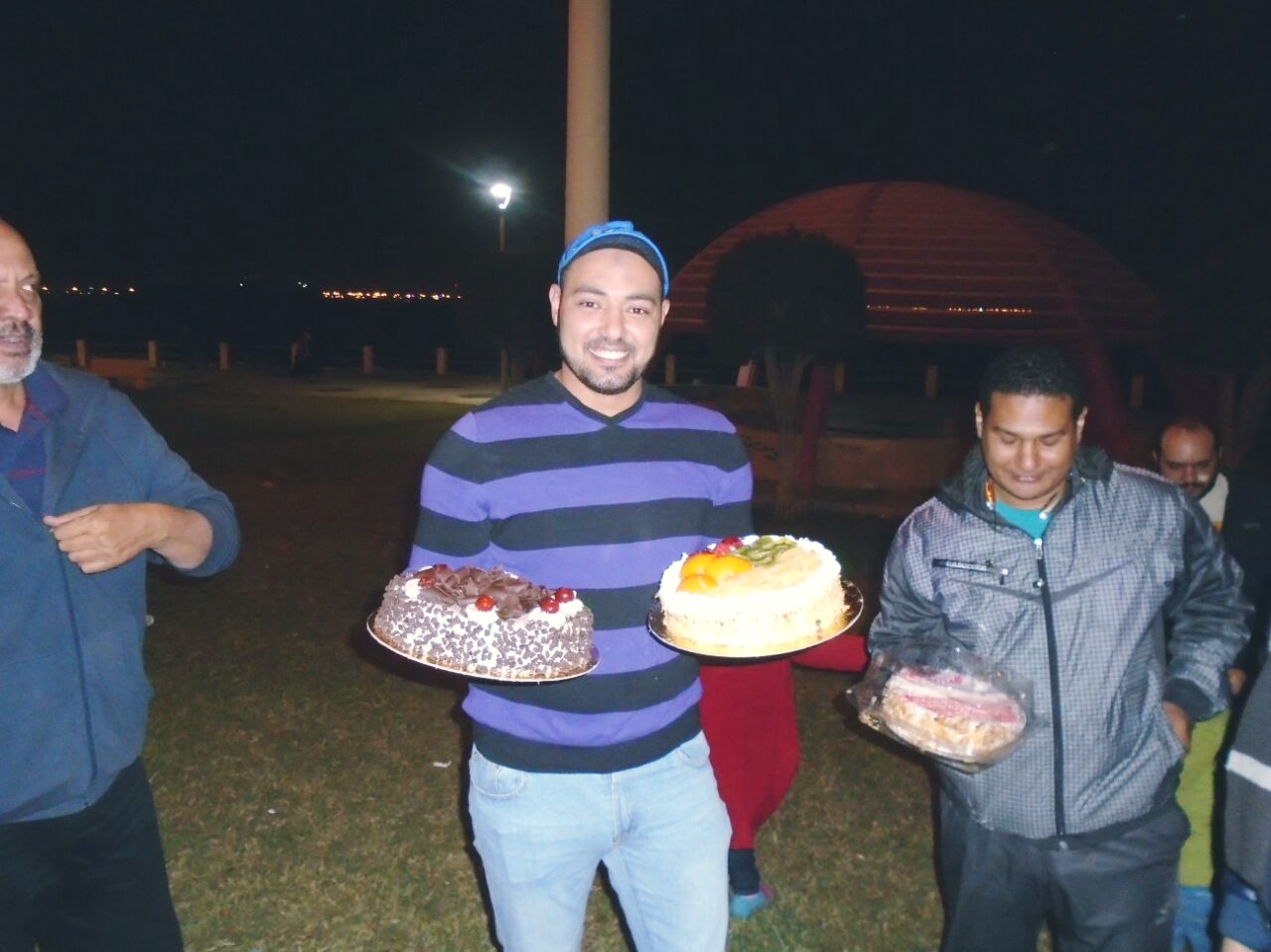 تجمع عدد من المصريين بالسعودية احتفالاً بعيد ميلاد الكابتن خالد نجيب أدمن جروب يالا نكمل لمتنا ، حيث تجمع أصدقاء خالد للإحتفال بعيد ميلاده ، مؤكدين بأن خالد لا يدخر جهداً فى مساندة أشقائه المصريين ولم شملهم بشكل دورى فكيف نتأخر فى يوم مثل هذا وتقدم الأهرام هديتها للكابتن خالد نجيب بإعادة نشر الحوار الذى قامت به مع خالد نجيب