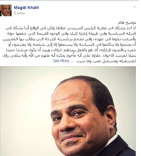 كتب الناشط القبطى مجدى خليل رئيس منتدى الشرق الأوسط للحريات توضيح على صفحته الشخصية أكد الأتى .