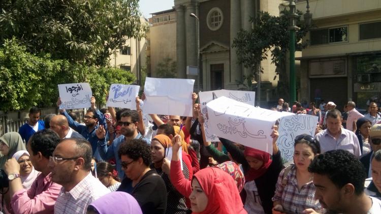 وجاء ذلك بعد عقد مؤتمر صحفي اليوم بالنقابة، وتنظيم وقفة احتجاجية على سلالم النقابة.