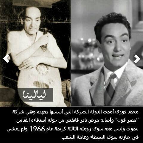 أسعد الفنانين التالية أسمائهم جموع المصريين والعرب بأعمالهم الرائعة التى ظلت ومازالت تراث فنى كبير يعود اليه الجميع فى حالة رغبتهم الأستماع الى فن أصيل ، ومازالت أفلامهم تحصد أعلى نسب من المشاهدة حتى الأن ، ولكن كانت نهاية هؤلاء الفنانون محزنة بعض الشىء فمنهم من مات مديون أو بنوع نادر من المرض أو أو اليكم الأسماء وما حدث لهم فى أواخر أيامهم