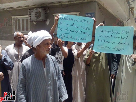 احتجاجا على قرار محكمة جنح بندر المنيا بتجديد حبس المتهمين. وقال إسماعيل سيد محامى المتهمين، إن النيابة أصدرت أكثر من أمر ضبط وإحضار للمتهمين الأقباط والمتهمين بحرق عدد من منازل من المسلمين ولم يتم القبض عليهم فى حين أن عددا من المحبوسين من المسلمين من ذوى الإعاقة والمرضى، ورفضت المحكمة إخلاء سبيلهم بضمان مالى على ذمة القضية.