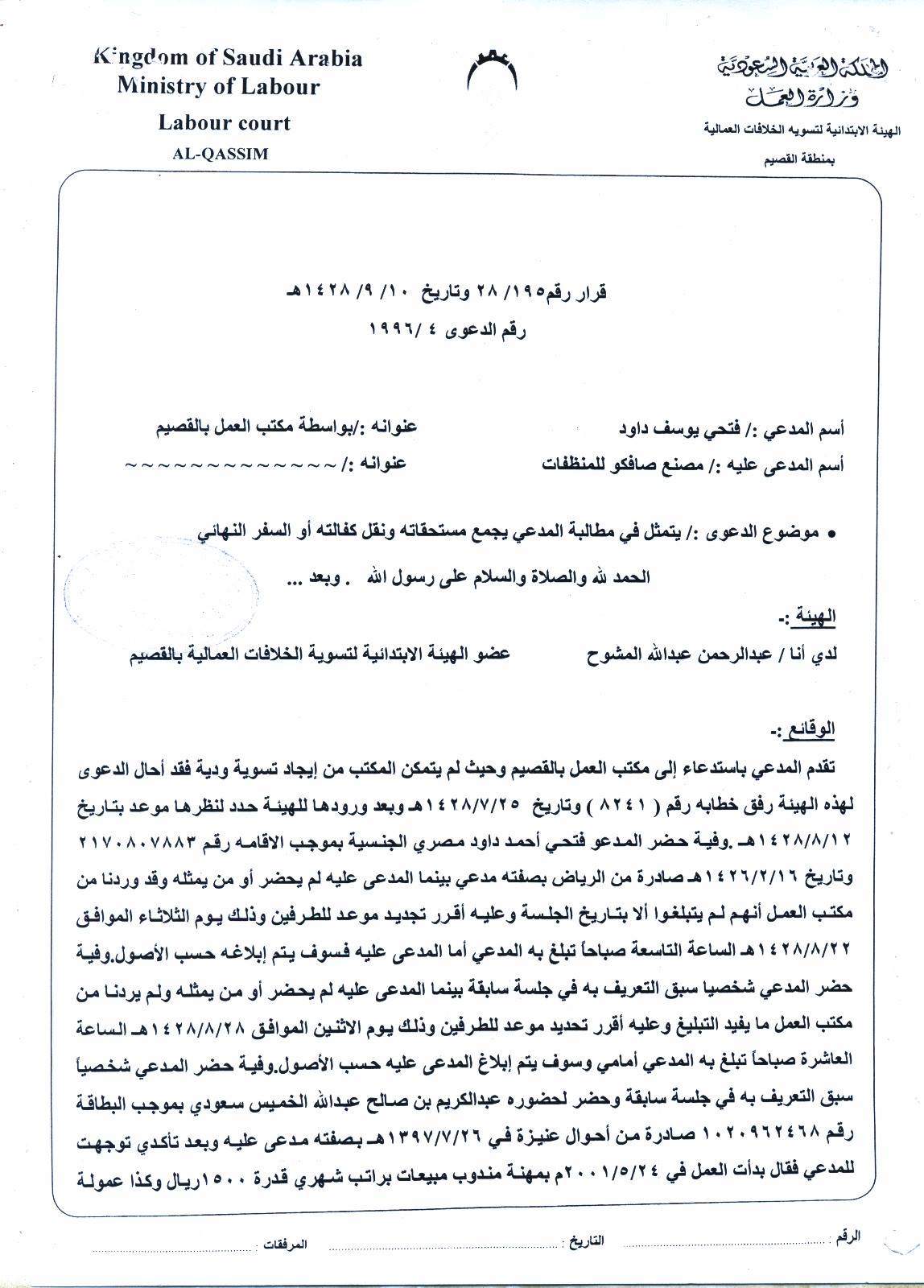 ومن اراد اي استفسار او اوراق عن القضية فهي موجودة عندي وليتواصل معي علي جوالي 0506141844 لان صاحب المشكلة معمم عليه بالشرطة لعلنا نجد عند اولي الامر حلا لمشكلة هذا الرجل الذي ظل ينتظر الحكم مدة وصلت الان الي عشر سنوات
