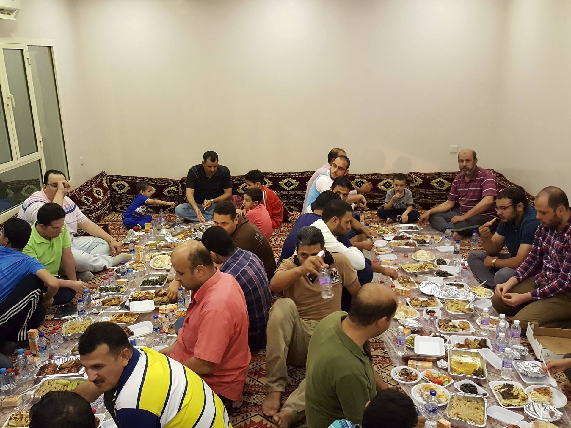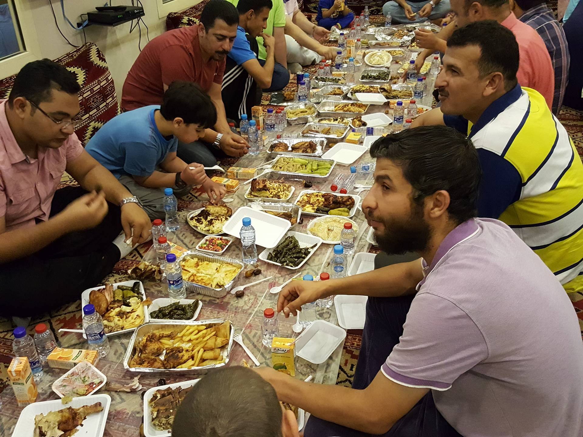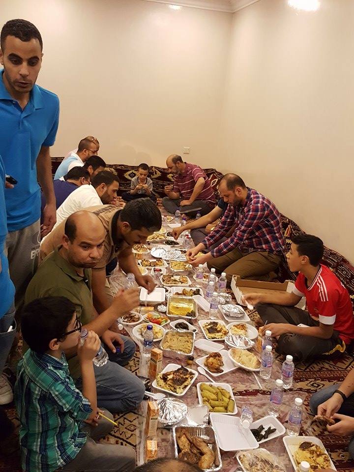 قامت كل أسرة بعمل إفطار أضافي للمصريين العزاب المحرومين من الأكل البيتي ، ثم صلاة تأدية صلاة العشاء والتراويح جماعة، ليتم إستكمال باقى اليوم بعدد من المسابقات الرياضية والثقافية للاطفال والكبار ، ثم نزول حمام السباحة وعمل مسابقات مائية للاطفال والكبار ايضا ، و تنس طاولة وكرة القدم.