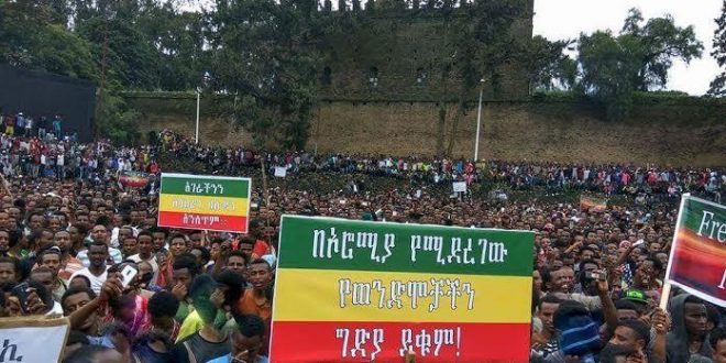 وتأتي المظاهرات في تحد لأوامر الحكومة، وأيضًا تضامنا مع احتجاجات منطقة أوروميا، التي نظمها محتجون في الفترة ما بين نوفمبر ومارس الماضي، اعتراضًا على مصادرة الحكومة لأراضي إثيوبيين من «الأورومو»، وقتلها لمواطنين.