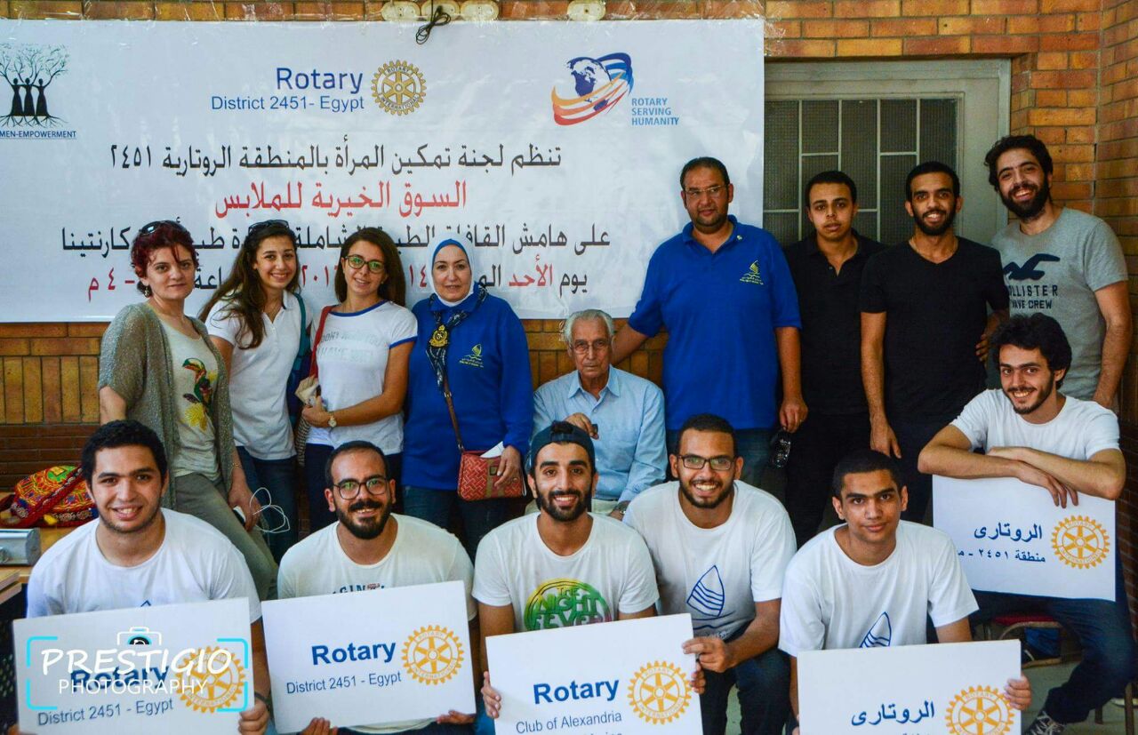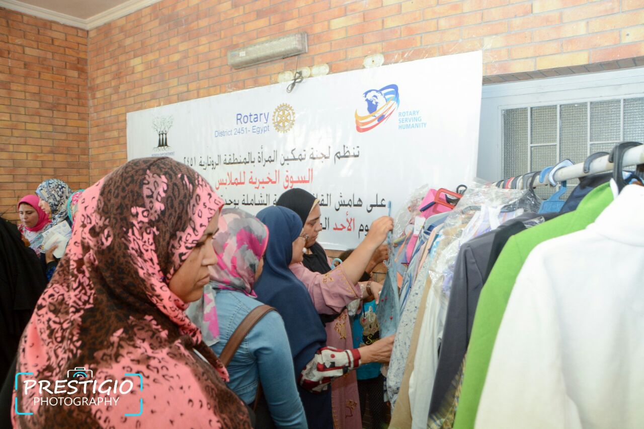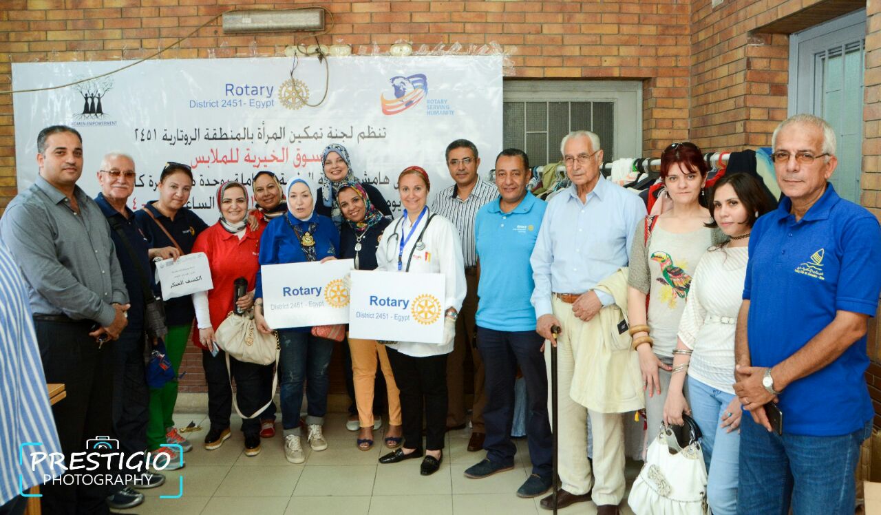 شاركت لجنة تمكين المراءه بالمنطقه الروتاريه 2451 معرض 5000 قطعة ملابس للرفع المعاناه علي هذه الاسر وقد نفذت بالكامل