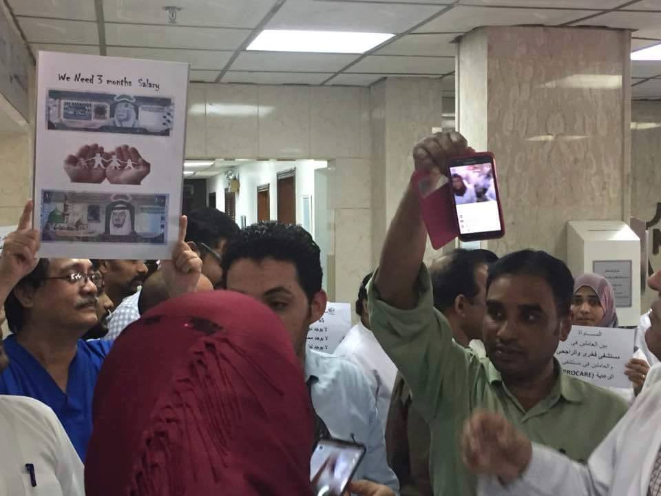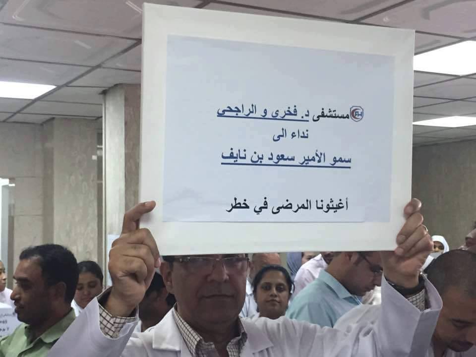 دخل العمال والأطباء بكلا من مستشفى فخرى ، ومستشفى سعد اكبر مستشفيات المنطقة الشرقية بالسعودية فى اضراب تام عن العمل بسبب تأخر رواتبهم منذ أربعة أشهر
