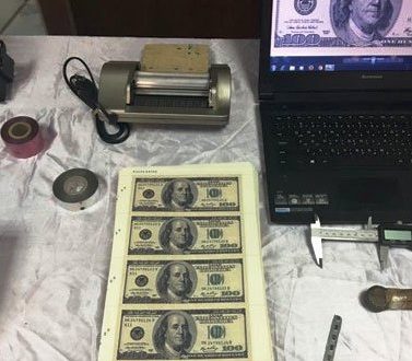 كما تم العثور على طباعتين ليزر وكباسات ورق وكمية كبيرة من الورق الخام مزود بعلامات مائية ومقصين لتقيطع الوراق، بالإضافة إلى لوجهات خاصة بعدة بنوك منها البنك المصرى والبنك العربى الإفريقى، كما ضبط بحوزته مبلغ 40 ألف جنيه حصيلة ترويج النقود المزيفة.