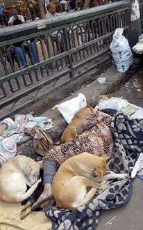 ويذكر ان نشطاء مواقع التواصل الاجتماعى تداولوا صورا لسيدة تنام على جانب رصيف ويحيط بها مجموعة من الكلاب الضالة.