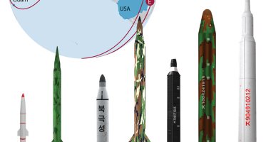 ذكرت مجلة فورين بوليسى، الأمريكية، أن الخبراء لدى مركز دراسات عدم الإنتشار النووى، نشروا مخططا بيانيا لمعلومات تظهر مدى التهديد الذى تشكله صواريخ كوريا الشمالية وقدرتها على الوصول إلى الولايات المتحدة وحلفائها الآسيويين كوريا الجنوبية واليابان.