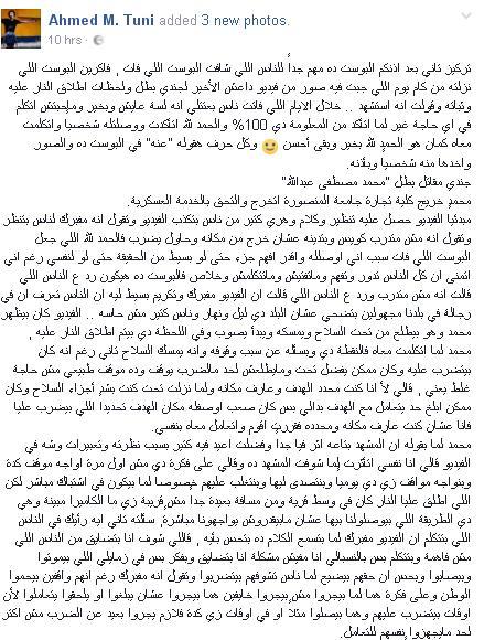 مبدئياً الفيديو حصل عليه تنظير وكلام وهري كتير من ناس بتكذب الفيديو وتقول انه مفبرك لناس بتنظر وتقول انه مش متدرب كويس وبتدينه عشان خرج من مكانه وحاول يضرب فالحمد لله اللي جعل البوست اللي فات سبب اني اوصلله واقدر افهم جزء حتى لو بسيط من الحقيقة حتى لو لنفسي رغم اني اتمنى ان كل الناس تدور وتفهم وماتتكلمش وخلاص فالبوست ده هيكون رد ع الناس اللي قالت انه مش متدرب ورد ع الناس اللي قالت ان الفيديو مفبرك وتكريم بسيط ليه ان الناس تعرف ان في رجالة في بلدنا مجهولين بتضحي عشان البلد دي ليل ونهار وناس كتير مش حاسه ..