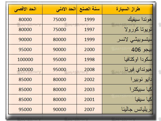 الأسعار المبينة في الجدول هي متوسط اسعار الموديلات في سوق السيارات المستعملة وقد تزيد أو تقل وفقا للعرض والطلب في السوق.