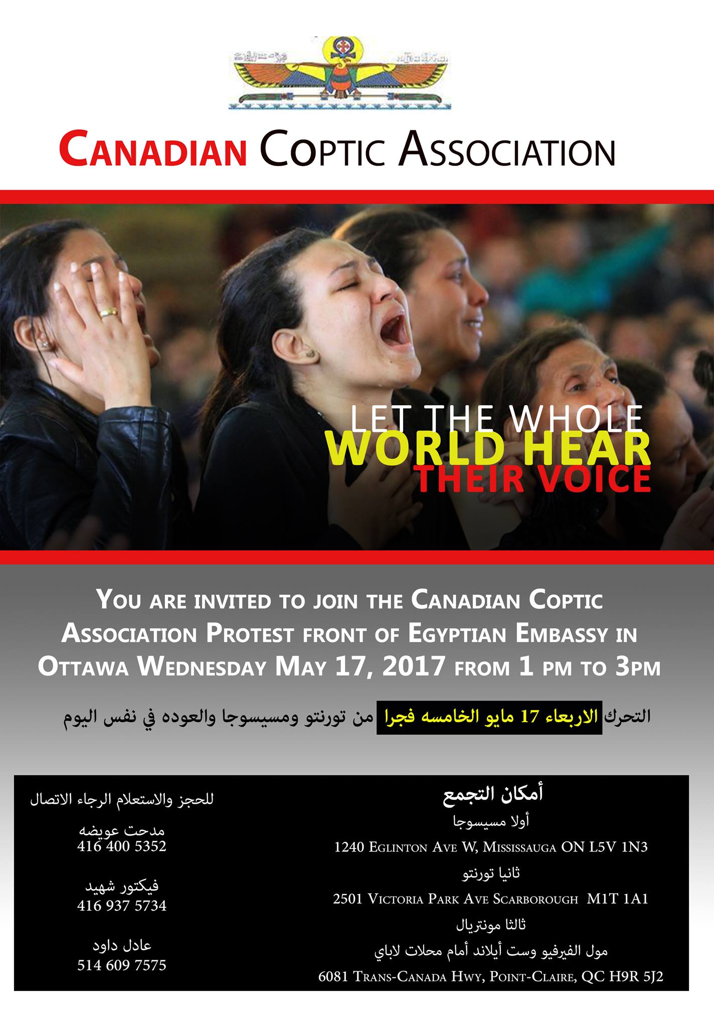 غدا سيقف أحرار الأقباط وقيادات الجالية القبطية بكندا أمام السفارة المصرية بأتاوا مطالبين بوقف خطف البنات مطالبين بالحرية للقمص بولس الرياني والشيخ محمد نصر وجرجس بارومي غدا ستعرف الجالية القبطية بكندا من هم الذين يدافعون عنهم وعن حريتهم وعن عرضهم غدا نلتقي لنكون معكم وبكم صوت الحق الذي لا ينحني ولا ينثني غدا موعدا لبدء صفحة جديدة من نضالنا السلمي الراقي ضد الظلم وضد عدم المساواة وضد العبث في أعراضنا…