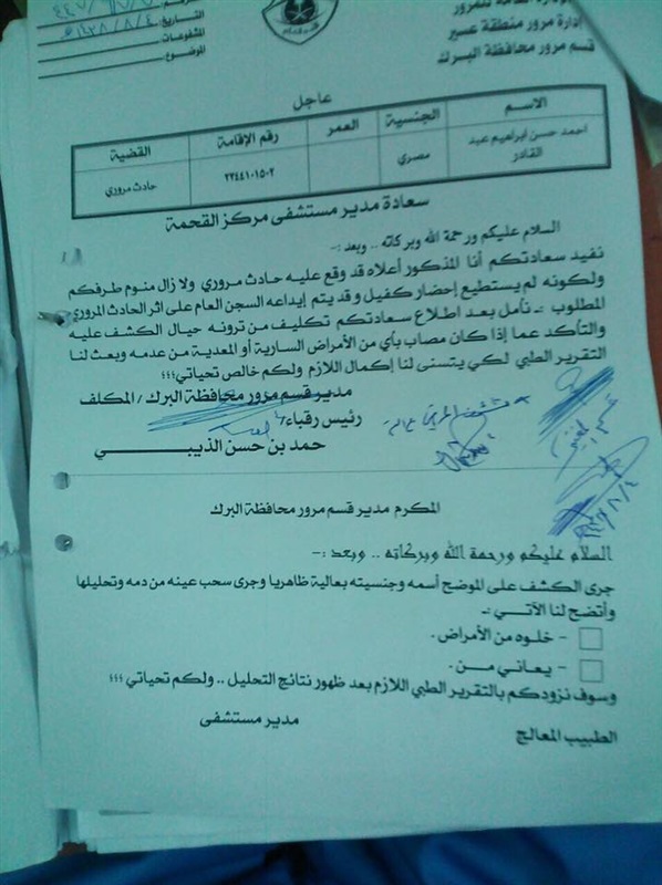 وقال أحمد حسن ابراهيم ابن مركز ديرب نجم بالشرقية،فى تصريحات حدثت مشاكل بيني وبين كفيلي ولم يعطني راتبي وحقوقي بعدها حاولت الحصول على عمل وتعاون معي احد أصدقائي وأعطاني سيارته للعمل عليها حتى أستطيع إرسال اموال لأولادي وزوجتي، وتابع: كنت عائدا من العمل على السيارة من جيزان وركب معي 5 أشخاص وأصبنا جميعا في حادث على الطريق ومات شخص كان معنا.