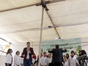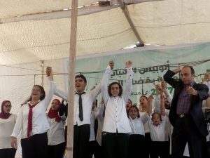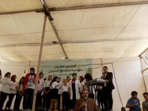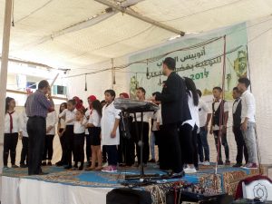 بدأ الحفل بالوقوف دقيقه حداد علي ارواح ضحايا قطار الاسكندريه ثم قدمت فرقه شباب مصر بقيادة المايسترو شريف عزت فقرات غنائيه متنوعه منها “سوريا في قلب مصر” و اخختم بعرض مسرحي اجتماعي عن قضيه الختان .