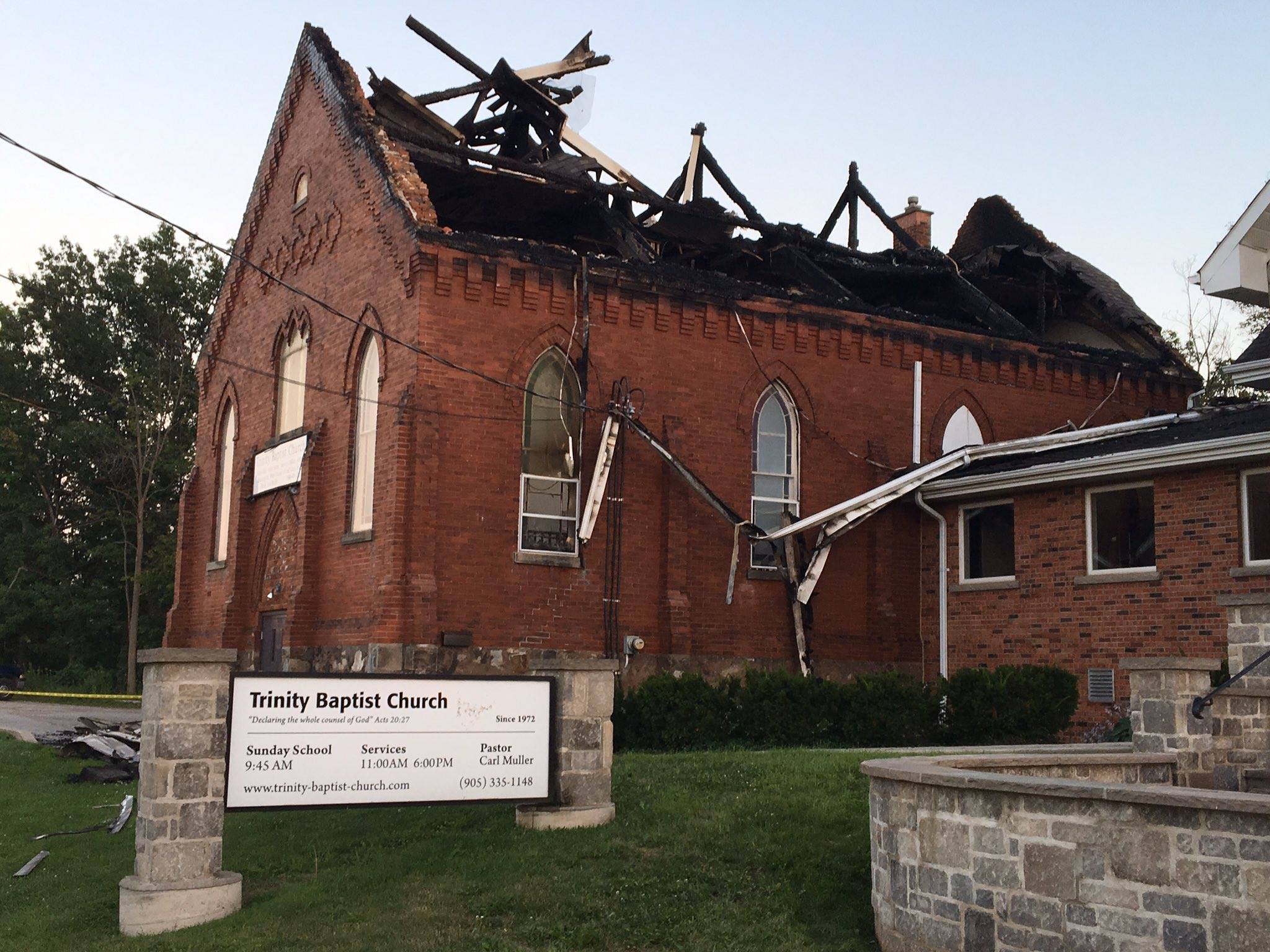 جريمة كراهية وربما إرهابية جديدة شهدتها كندا مع الساعات الأولي ليوم الأربعاء ١٦ اغسطس٫ عندما تلقت إدارة الأطفاء بمدينة بيرلينجتون الواقعة حوالي ٦٥ كم غرب مدينة تورنتو، بلاغا بنشوب حريق في الكنيسة المعمدانية الواقعة في شارع ابل باي لين بمدينة بيرلينجتون.