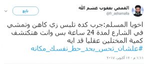 وقد اختتم يعقوب تغريدته بالدعوة إلى التجربة لكي يشعر المسلمون بذلك فعلاً إلا أنه لاقى تعليقات رافضة لذلك، حيث رد عليه أحد المسلمون بأنهم يرون يومياً أقباط يسيرون في الشوارع مرتدين الزي القبطي دون أن يتعرضوا لهم بأي تعليقات أو ردود فعل غير مقبولة، بينما قال له آخر بان يجرب هو أن يخلع ذلك الزي ويسير بذقنه في الشوارع ليرى أيضاً كم التعليقات والكراهية لأصحاب الذقون.واختلفت الأراء حول التغريدة ورد البعض على التغريدة معذور الجريمة بشعة وتحزن القلوب .