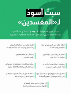 هكذا أطلق علية في جميع الأوساط فقد تنوعت أحداثة الضخمه وكانت محورية ومفصلية في تاريخ المملكة ،إن ما تشهدة المملكة من أحداث هي فارقة في كيانها كلة ،أنا بالطبع لا أتحدث عن ماحدث في السبت من إعلان استقالة رئيس وزراء لبنان سعد رفيق الحريري من السعودية،ولا حتى صد مضادات طيران الدفاع السعودي لصاروخ بالستي كاد أن يقصف مطار الملك خالد بالرياض ،مع ضخامة تلك الأحداث ولكن الحدث الأضخم هو حركة التطهير السعودية التى نالت أسماء رجال أعمال وأمراء وقادة في الجيش السعودي ما كنت حتى تستطيع أن تهمس بأسمائهم ،أسماء حينما تراها تعيد قرائتها مجدد من فرط عدم تصديق عينيك أو ربما أن العين قد خانتك ،في إشارة واضحة جلية أن ملك الحزم مصر على مواصلة الحزم داخليا وخارجيا