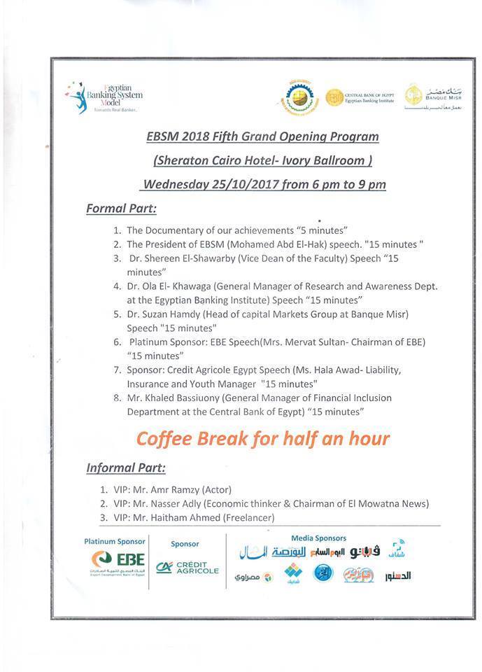 – وتمت دعوة المفكر الإقتصادى ناصر عدلى محارب فى الاحتفالية كضيف شرف على هامش الاحتفالية وقام بالقاء كلمة عن بعض افكاره الأقتصادية غير التقليدية ” خارج الصندوق ” .