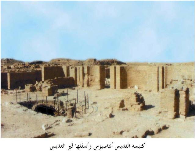 وبعدها قام البابا أثناسيوس الأول البطريرك رقم(20)(328-373م) ببناء كنيسة في ذلك الموضع ووضع فيها رفات القديس فى زمن الإمبراطور قسطنطين(313-335م). ثم أنشيت الكاتدرائية العظيمة ذات الهياكل السبعة من الرخام والأحجار النادرة حتى سميت هذه المدينة بـ المدينة الرخامية،وأطلق عليها الأقباط مدينة “بو مينا”، وفى عهد البابا ثاؤفيلس البطريرك رقم (23)(385-412م) فى زمن الإمبراطور آركاديوس بن ثيؤدوسيوس الكبير(377-408 م). وقد عاون الأباطرة فى زخرفة وتزين الكنيستين، وفى عهد البابا تيموثاؤس الثانى(454-477) قامت مدينة كبيرة حول هاتين الكنيستين،وشيد ديراً على أسم مار مينا فى هذا المكان للرهبان الذين يخدمون هذه الكنائس،فى زمن الإمبراطور زينون(479-491)، فوجدت المحال التجارية والمصانع، والحمامات، بل والمنازل والقصور الفاخرة، تحوطها المروج وأصبح الطريق إليها ممهداً تسلكه الآلاف، وقد امتدت شهرتها إلى خارج حدود الشرق. وكان الحجاج يقبلون من كافة الأنحاء لنوال البركة ويأخذوا تلك المياه العجيبة التى تزيل الآلام. وكانت القوارير الفخارية عليها صورة القديس مارمينا تحمل تلك المياه المقدسة التى يقول عنها أحد الحجاج من أزمير فى كلمة عثر عليها” خذو مياه مينا المقدسة فتزول عنك الآلام”. وشهدت الجموع من الحجاج لهذه المدينة لعجائب القديس مينا فلقبه بـــ “العجايبى”. وقد تعرضت المدينة فى القرن العاشر الميلادى لغارات الوثنيين ثم العرب المسلمين، فدمرت وتخربت وهجرها بعض الأهالى والسكان.