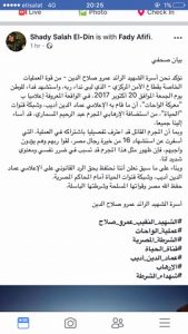 وأكدت أسرة الشهيد، عبر موقع التواصل الاجتماعى “فيسبوك”، أن ظهور مثل هذا المجرم تسبب فى ضرر معنوي، وأنهم يطالبون بالاحتفاظ بحق الرد القانونى على الإعلامي عماد الدين أديب، وشبكة قنوات الحياة أمام المحكمة.