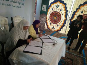 وعقب توقيع البروتوكول تكريم المهندسة إيمان زاهر الطالبة بكلية الفنون التطبيقية والحاصلة على جائزة أفضل تصميم للسجاد.
