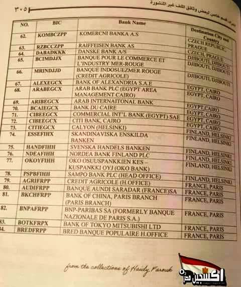بنك الاسكندرية – البنك العربي – البنك العربي الدولى – وبنك القاهرة – سيتى بنك – البنك التجارى الدولى