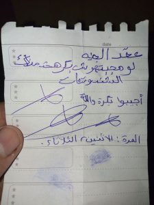 : ” شوفتو المصيبة اللى أنا فيها ابنى مسلف زميله فى المدرسة جنيه وواخد عليه وصل أمانة”.