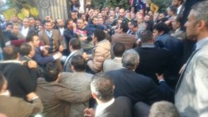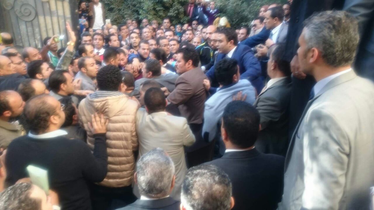 وقعت منذ قليل، اشتباكات بالأيدي بين أنصار ومعارضى سامح عاشور نقيب المحامين، المتواجدين الآن بمقر النقابة، بوسط البلد، لتنفيذ حكم الإدارية العليا، بإلغاء ضوابط القيد، التى وضعها مجلس النقابة