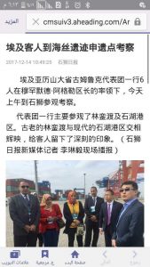 كما قام وزير ثقافة “تشيوان تشو” بدعوة الوفد المصري لزيارة عدة أماكن تاريخية مميزة؛ منها مقابر الخير “مقابر الأصحاب” ومسجد الأصحاب ومعهد التخطيط والمتحف الإستثماري .. وغيرها.