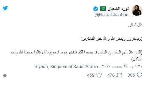 وعقّبت “الشعبان” على الفيديو المتداول، بنشر آيتين من القرآن الكريم للتعبير عن استيائها مما يتداول وينسب لها.