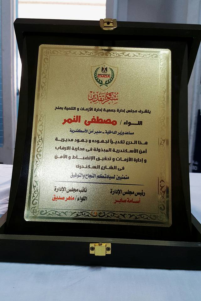 وكان ذلك بحضور الدكتور محمد سلطان محافظ الأسكندرية وفى ختام الزيارة تم تقديم درع الجمعية للسيد مدير الأمن مشيدين بالدور الوطني لرجال الشرطة وتضحياتهم من أجل الوطن .