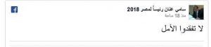 وقالت الصفحة في تدوينة غريبة في توقيتها وأسبابها رصدتها “وطن”:”لا تفقدوا الأمل”.