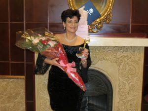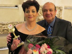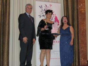 وقد منحت الجايزه تقديرا لمجهودها وعملها في مجال الصحه والعافيه لمساعدتها لذوي الاحتياجات الخاصة ومساعده المعالجين من بعض أمراض السرطان ومساعده كبار السن