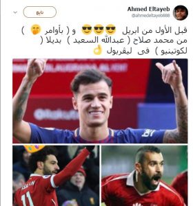 وكتب الطيب عبر حسابه على “تويتر”: “قبل الأول من أبريل، وبأوامر من محمد صلاح، عبد الله السعيد بديلا لكوتينيو فى ليفربول”.