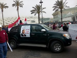 رافعين الأعلام المصرية ولافتات تأييد ودعم الرئيس ، و انتشرت مكبرات الصوت و الاغاني الوطنيه في اجواء وطنيه احتفالا بالعرس الانتخابي ، و حملو لافتات تأيد و حب للسيسي تأيدا له بفترة رئاسية مقبلة
