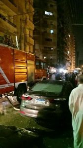 مؤكدا “الاطفال شافت الموت بعنيها و كنا بنصبرهم بميه من الاسطح المجاورة و الشباب حاولت تساعد قبل قدوم النجدة و لكن توفت حماته التي كانت تصرخ من شرفه البلكونه و رجل اخر و هناك اصابات من رجال المطافي”