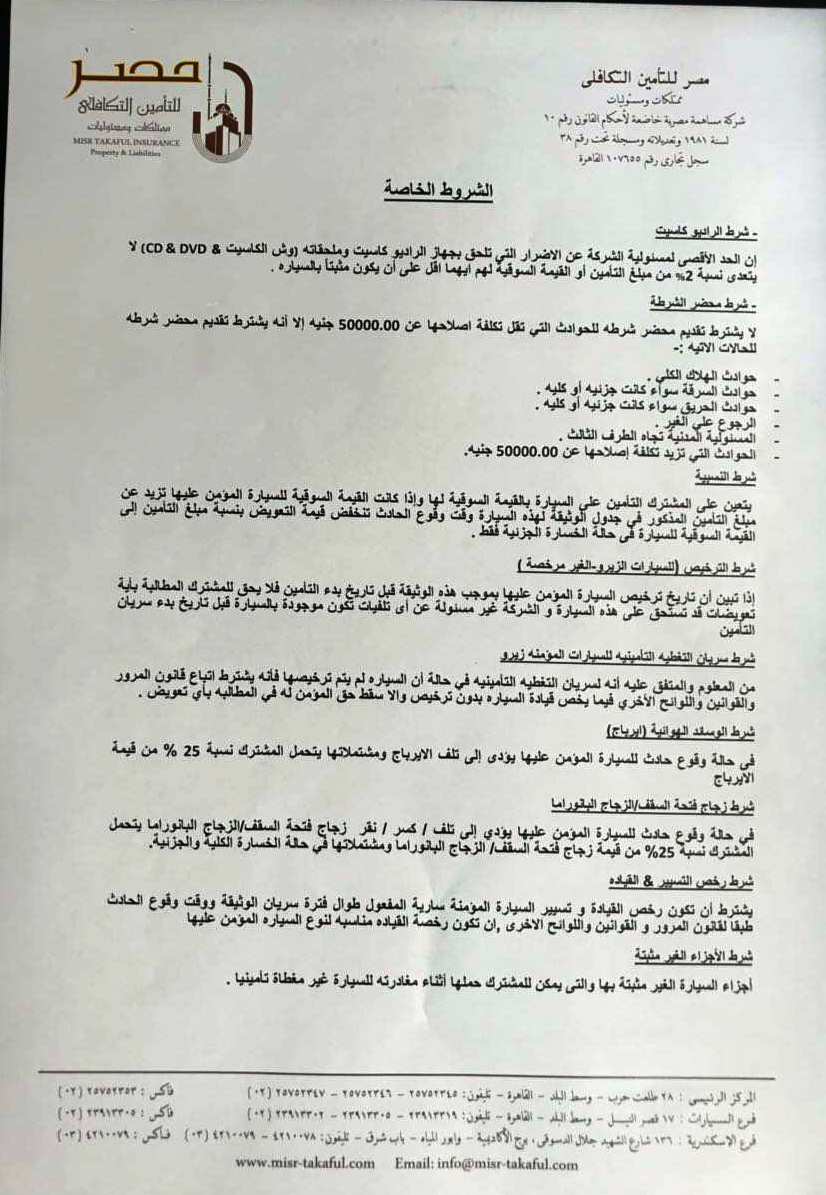 اطمع في كرم سيادتكم بالتدخل الفوري وشمول السيارة كما نصت وثيقة التامين مثلي مثل الجميع لان تلك الاضرار ضربت جميع انحاء الجمهورية