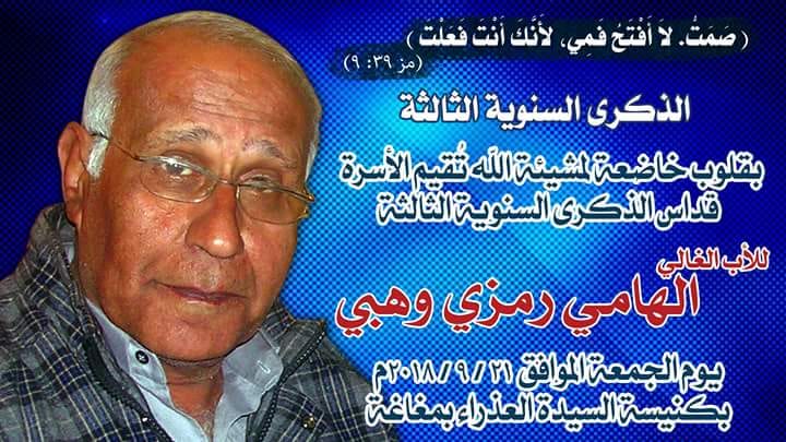 أسامة عيد يتقدم بخالص التعازي الى الصديق بيتر إلهامي ويتذكر دائما الغالي الأستاذ إلهامي رمزي الذي عاش بمحبة وشجاعة ورضا وفي ذكراه الثالثة نقول ذكرى الصديق تدوم إلى الأبد