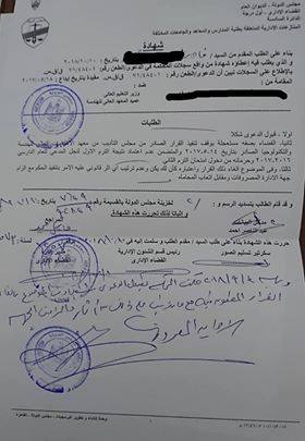 من عدم وجود اى إدانة بالاوراق على الطالب وعدم إتباع الإجراءات القانونية العادلة أو وجود اى تحقيق يدين الشاكي