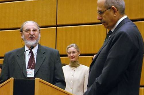 هذه الصوره في نهايه 2003 عند حصولي علي جائزه الامتياز في العمل ككبير مفتشي الوكاله الدوليه للطاقه الذريه وانا اخاطب مدير الوكاله محمد البرادعي بضروره تفعيل دور الوكاله بحياديه ونزاهه وهو الامر الذي مع الأسف لم يلتزم به حتي تركنا العمل في الوكاله عام 2009 .