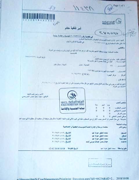 (13-صورة من الإفراج بيوم 14.12/2/2018صورة من ورقة الافراج بتاريخ 23/4/2018مذكور به حجز جواز السفر الخاص بي لديهم 15-صورة من الشكوي المقدمة الي النيابة التي تم الموافقة عليه .