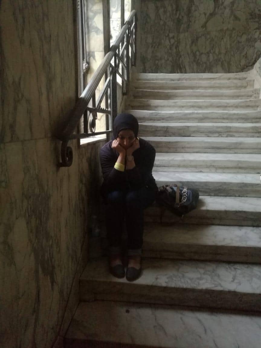 اعتصمت ابتسام سلامة زوجة المهندس على أبو القاسم داخل دار القضاء العالى فى محاولة منها لمقابلة النائب العام المصرى للتحدث معه حول قضية زوجها