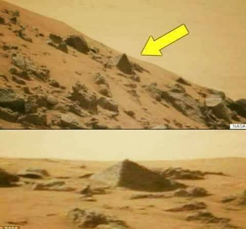 سادسا- من الأمور العجيبة في هذا الامر عندما نشرت وكالة ناسا صورا لهرم المريخ عن طريق موقع (هافنجتون) نتيجة لتلك الصور التي التقطها المسبار (كورسيتى) المختص بعمليات بحثية على الكوكب الأحمر،وجد شكلا فعلا يشبه الهرم ومن هنا جاءت الاقاويل والتخيلات.ولكن الاغرب من هذا كله بان احد علماء الناسا عندما حلل هذه الصور وقياسها قال في حديث له نصا (أن الجزء الظاهر من الهرم هو حتما القمة فقط،والتى تعادل تقريباً حجم سيارة،وأن باقى الهرم مدفون تحت سطح الكوكب بفعل الظروف المناخية)