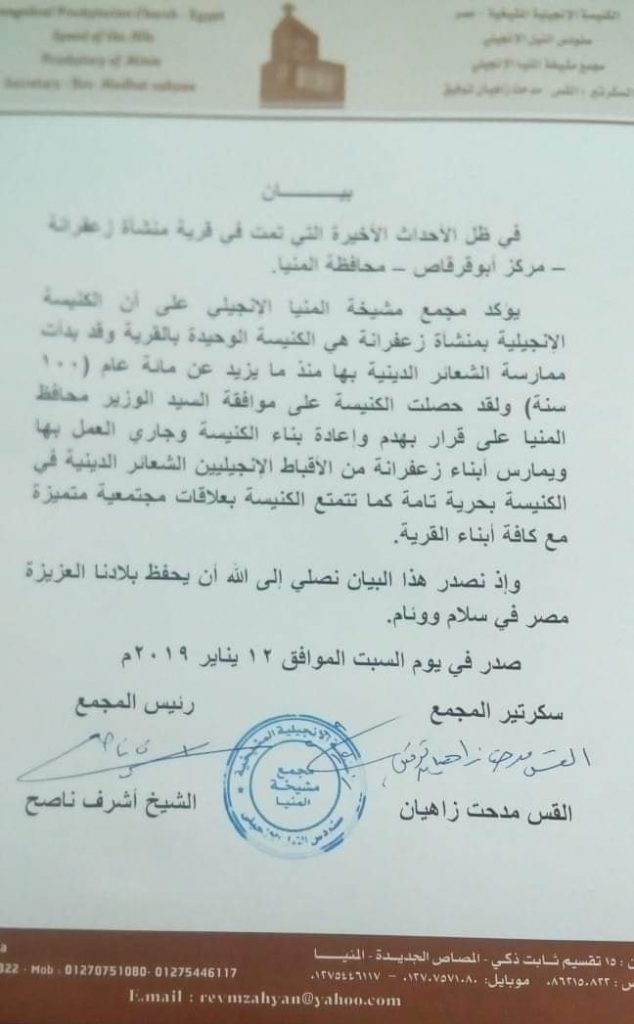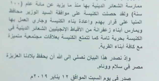 آثار بيان قامت بنشره الكنيسة الإنجيلية ،حول أنهم الكنيسة الوحيدة فى القرية وأنهم يقومون بإعادة بناء الكنيسة من جديد آثار البيان غضب الطائفة الأرثوذكسية