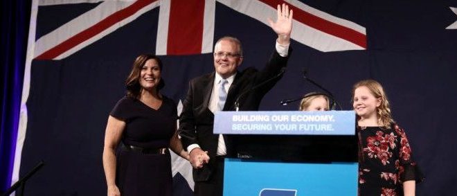 فاز الائتلاف الحاكم بأستراليا بزعامة السيد رئيس الوزراء السيد اسكود موريسون رئيس حزب الأحرار على منافسة التقليدي السيد بيل شورتون زعيم حزب العمال فى الانتخابات الفيدرالية التى أقيمت صباح اليوم السبت ١٨ مايو , وقد احتفل السيد موريسون مع عائلته بعد ٦ ساعات فقط من انتهاء الانتخابات بفوز الائتلاف الحاكم بأحد الفنادق الكبرى وسط مدينة سيدنى عاصمة ولاية نيو ساوث ويلز بحضور عدد كبير من الصحفيين والإعلاميين والداعمين للحزب يتقدمهم السيد جون هاورد رئيس الوزراء الأسبق والسيدة جلاديس بريجيكيان رئيسة حكومة نيو ساوث ويلز وذلك بعد التأكد من حصوله على أغلبية المقاعد فى جميع الولايات الاسترالية رغم أستمرار عمليات فرز الأصوات كما قدم موريسون الذى اعلن إيمانه بالمعجزات الشكر لكل من منافسه العمالى السيد بيل شورتون على تهنئته بالفوز وايضاً جميع أعضاء حزب الأحرار والداعمين له كذلك الذين ساهموا بالعمل التطوعي خلال فترة الانتخابات .