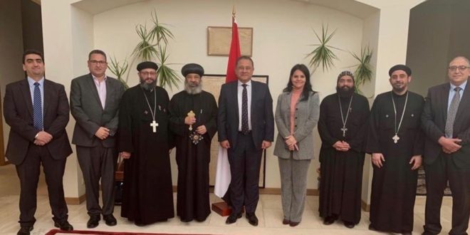 أستقبلت السفارة المصرية بكانبرا العاصمة الفيدرالية لأستراليا الحبر الجليل الانبا رافائيل أسقف عام كنائس وسط القاهرة وقد رحب السيد محمد خيرت السفير المصرى واعضاء السفارة بالحبر الجليل والوفد المرافق له وذلك أثناء زيارتة الرعوية لإيبارشية ملبورن التى شملت مدن ملبورن , اديليد , بيرث وكانبرا عقد خلالها عدد من الاجتماعات بشعب وشباب كنائسها , وقد ترأس الانبا رافائيل القداس الالهى امس الاحد بكنيسة القديس مار مرقس قام خلاله بسيامة وترقية عدد من شمامسة الكنيسة , وسوف يصل مساء اليوم الاثنين ٢٠ مايو محطته الاخيرة ملبورن عائداً من كانبرا لقيادة صلاة التسبحة بكنيسة الملاك ميخائيل على ان يترأس اجتماع عام لكهنة الإيبارشية صباح غداً الثلاثاء , كذلك اجتماع عام للشعب بكنيسة القديس مار مينا والقديسة مارينا بهالام الساعة ٦ مساءً , كما يقود القداس الالهى صباح الأربعاء ٢٢ مايو بكنيسة القديسة العذراء بكينسنجتون ثم التوجه لزيارة القنصلية المصرية بملبورن قبل ان ينهى زيارتة الخميس ٢٣ مايو عائدا للقاهرة حاملاً تقريراً مفصلاً عن احوال إيبارشية ملبورن قبل إنعقاد جلسات المجمع المقدس شهر يونيو القادم .