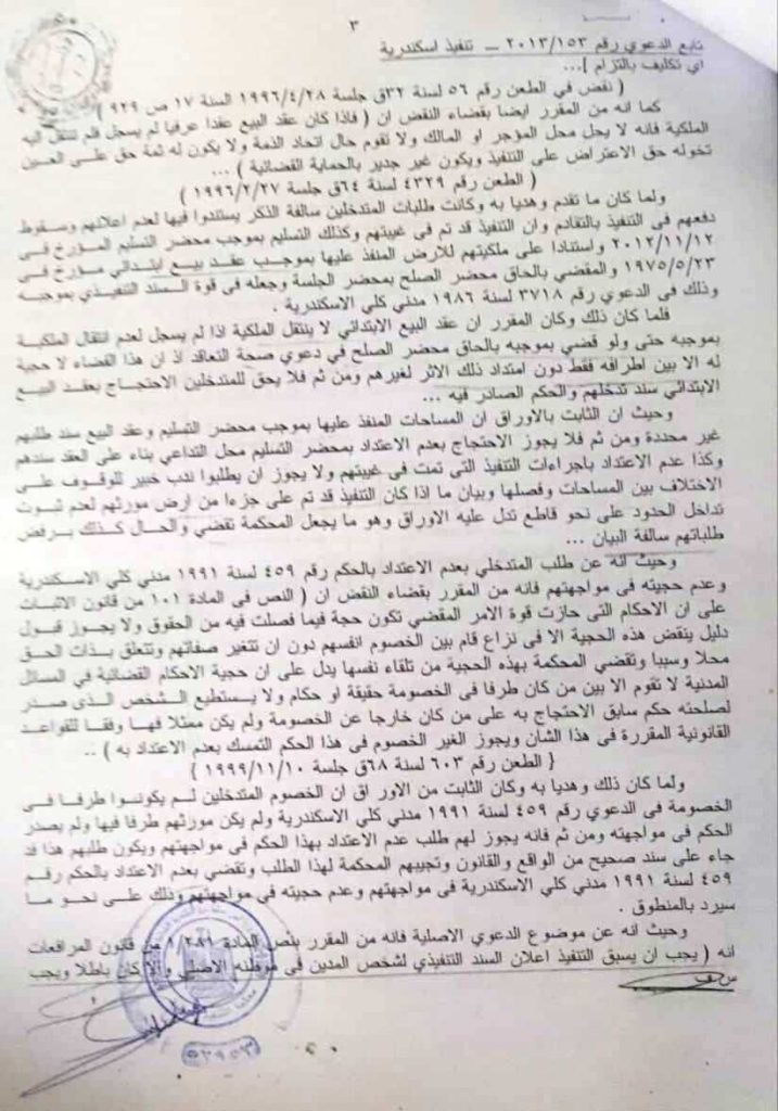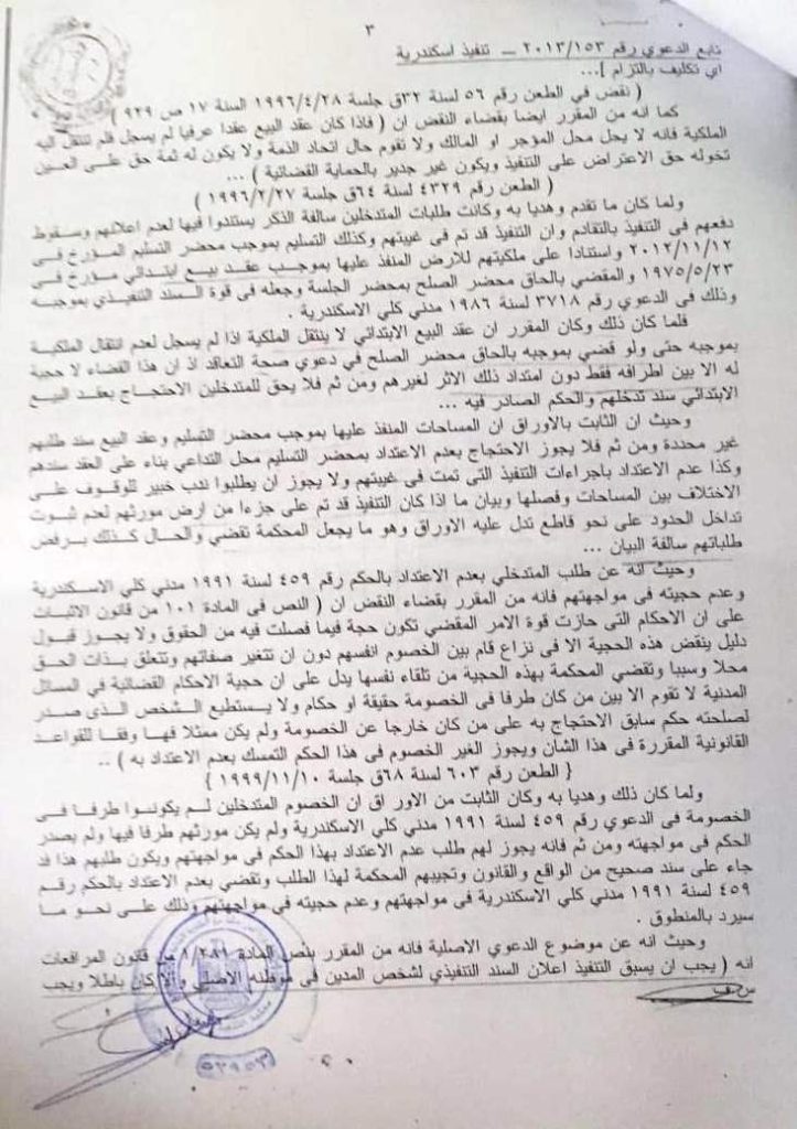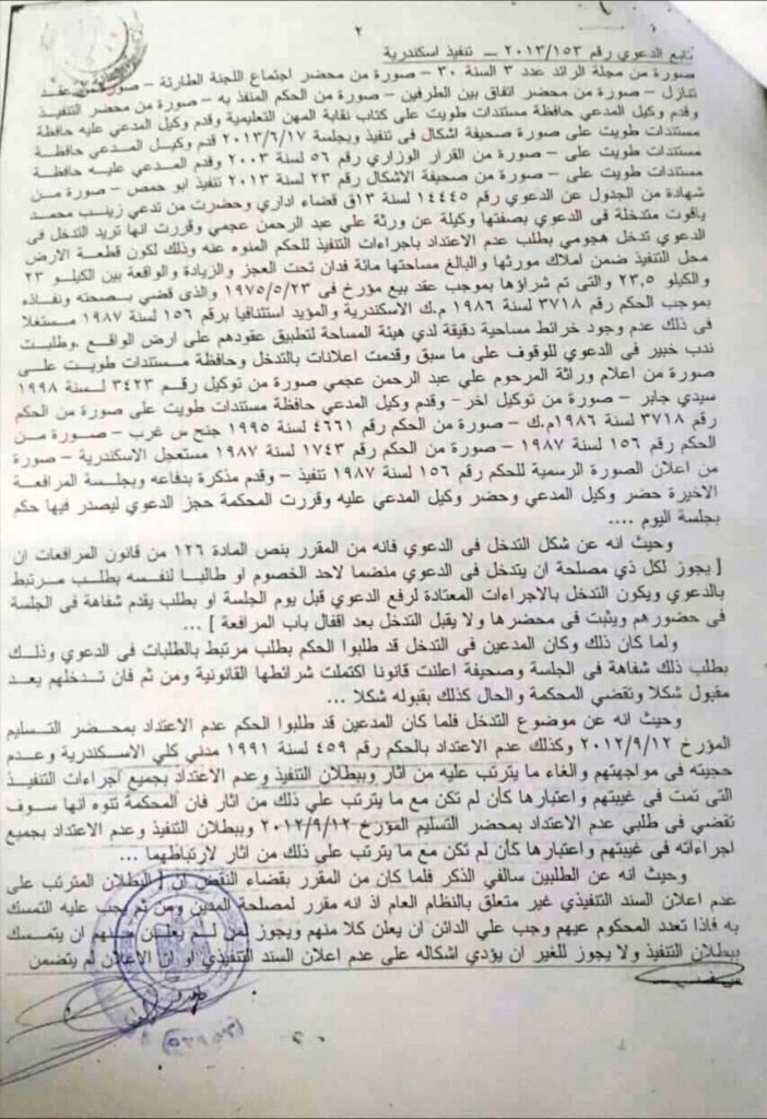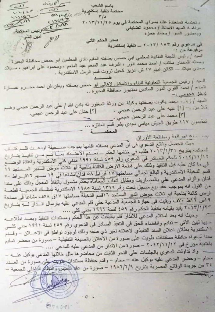 وأكد “بسيوني” ، ان ملاك الارض الحقيقيين و عددهم حوالي ٥٠ عضو حاولوا تنفيذ حكم المحكمة الصادر بإحقيتهم في تملك الأرض إلا أنهم اصطدموا بالبلطجية حتي الآن و حاولوا التصالح لكنهم يتم مماطلتهم ضاربين بالقانون عرض الحائط .