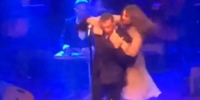 ظهر #كاظم_الساهر بكامل أناقته وهو يقف على المسرح ليحيى حفلا غنائيا أمس، في إسطنبول بتركيا، وأثناء الحفل، قامت إحدى الفتيات من معجبي الفنان كاظم الساهر بالصعود على المسرح فجأة، وانقضت عليه من الخلف لتحتضنه، بطريقة أصابت الفنان كاظم الساهر بالصدمة، بما فعلته الفتاة، وخاصة أنه كان مندمجاً بالغناء، ولم يلاحظها عندما كانت تقترب من المسرح.